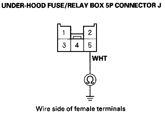 16. Check for continuity between the No. 5 terminal of the under-hood fuse/relay box 5P connector J and body ground.