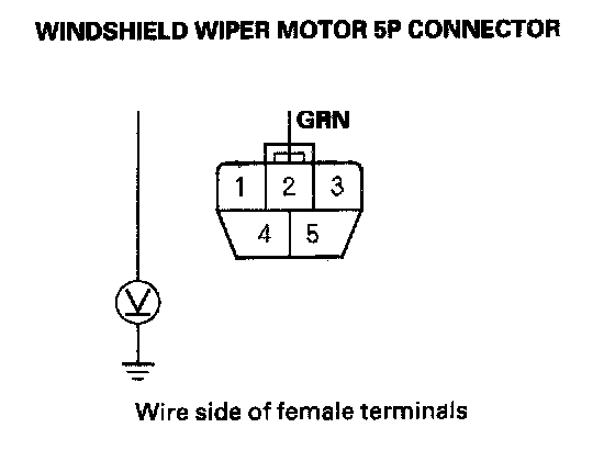 20. Check for voltage between the No. 2 terminal of the windshield wiper motor 5P connector and body ground.