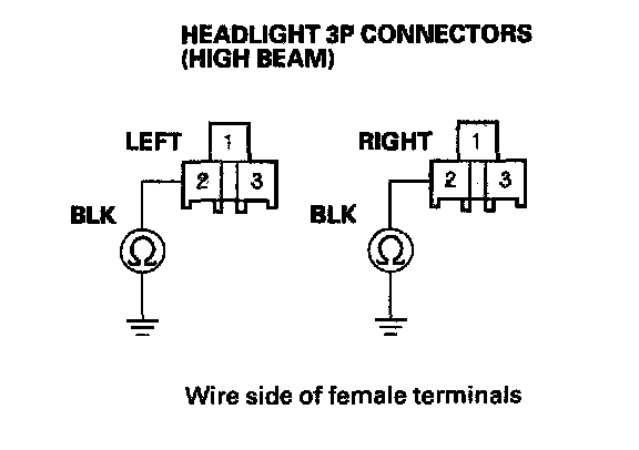 12. Check for continuity between the No. 2 terminal of the headlight (high beam) 3P connectors and body ground.