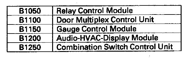 NO - If DTC B1050 is indicated, replace the relay control module. If DTC B1100 is indicated, replace the door multiplex control unit. If DTC B1150 is indicated, replace the gauge control module. If DTC1200 is indicated, replace the climate control unit. If DTC B1250 is indicated, replace the combination switch control unit.