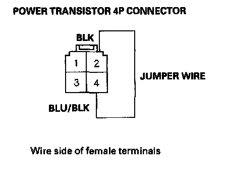 12. Connect the No. 2 and No. 4 terminals of the power transistor 4P connector with a jumper wire.