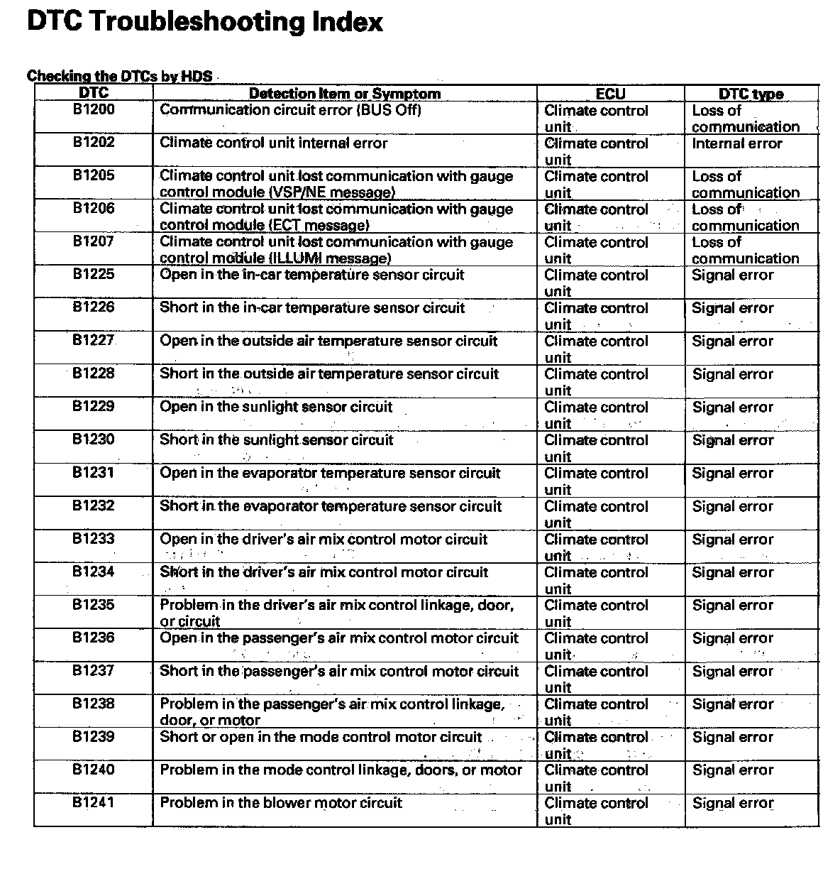 DTC List - Heating and Air Conditioning