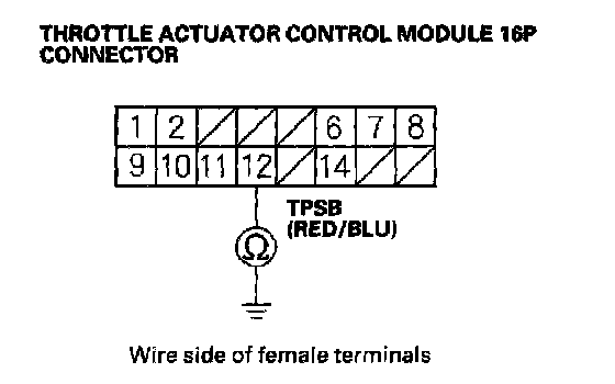 10. Check for continuity between throttle actuator control module 16P connector terminal No. 12 and body ground.
