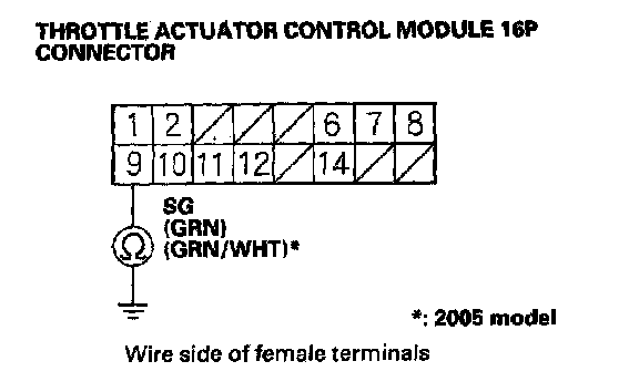 15. Check for continuity between throttle actuator control module 16P connector terminal No. 9 and body ground.