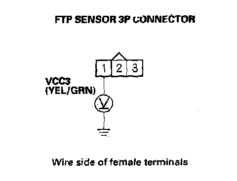 14. Measure voltage between FTP sensor 3P connector terminal No. 1 and body ground.