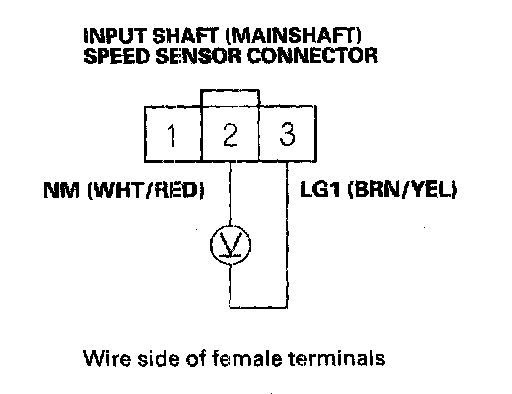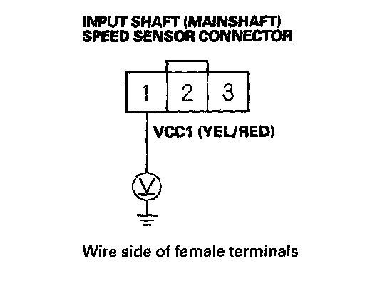 12. Measure the voltage between input shaft (mainshaft) speed sensor connector terminal No. 1 and body ground.