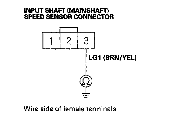 16. Check for continuity between input shaft (mainshaft) speed sensor connector terminal No. 3 and body ground.