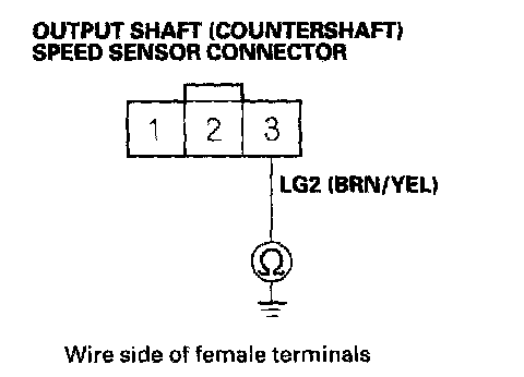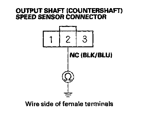 14. Check for continuity between output shaft (countershaft) speed sensor connector terminal No. 2 and body ground.