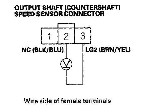 18. Measure the voltage between output shaft (countershaft) speed sensor connector terminals No. 2 and No. 3.