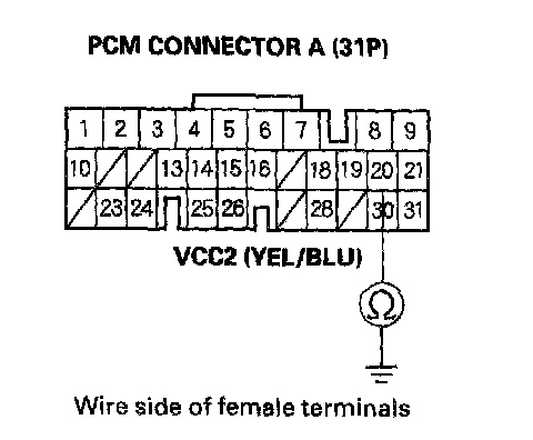 27. Check for continuity between PCM connector terminal A20 and body ground.