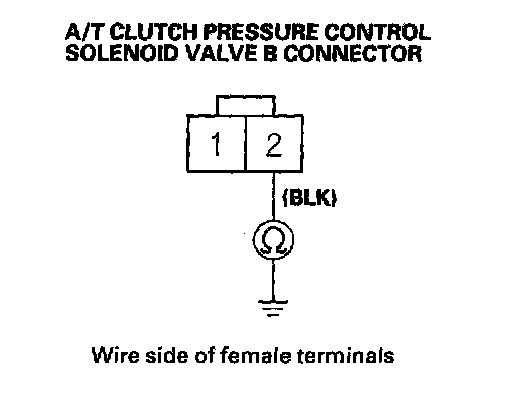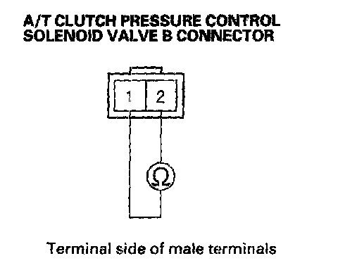 8. Measure A/T clutch pressure control solenoid valve B resistance at the solenoid connector.