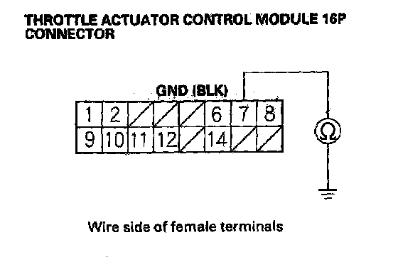 15. Check for continuity between throttle actuator control module 16P connector terminal No. 7 and body ground.