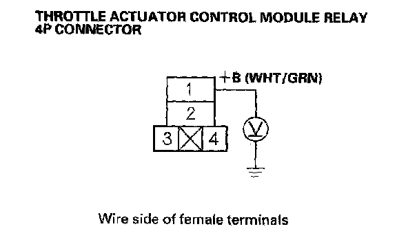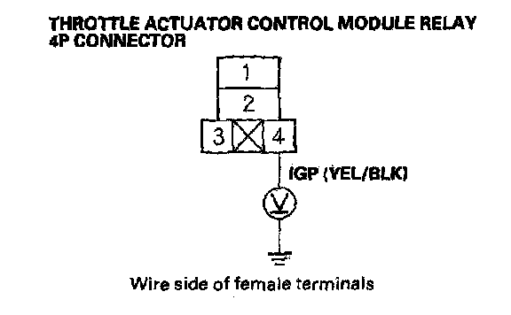 17. Measure voltage between throttle actuator control module relay 4P connector terminal No. 1 and body ground.