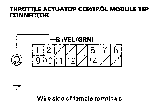 31. Check for continuity between throttle actuator control module 16P connector terminal No. 2 and body ground.