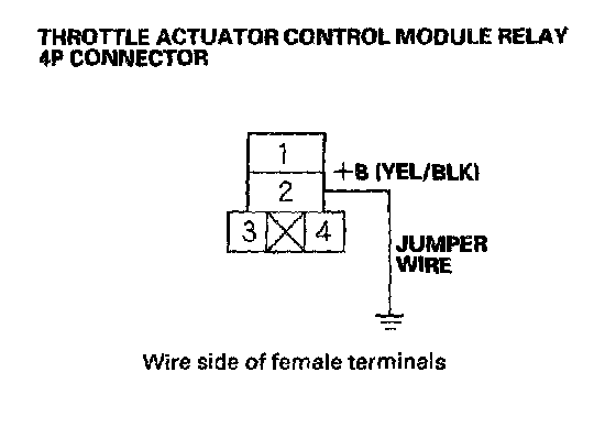 32. Connect throttle actuator control module relay 4P connector terminal No. 2 to body ground with a jumper wire.