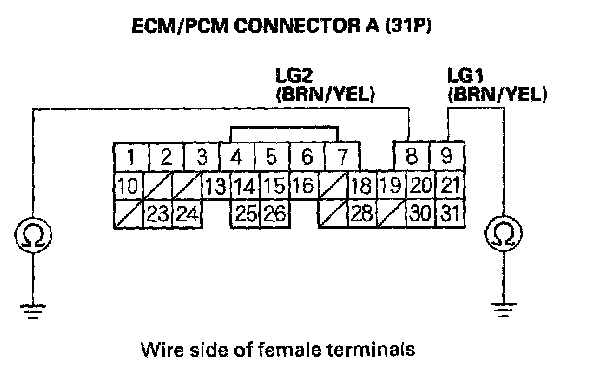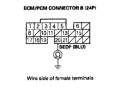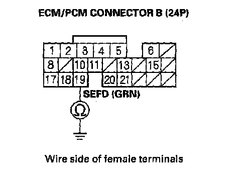 38. Check for continuity between ECM connector terminal B19 and body ground.