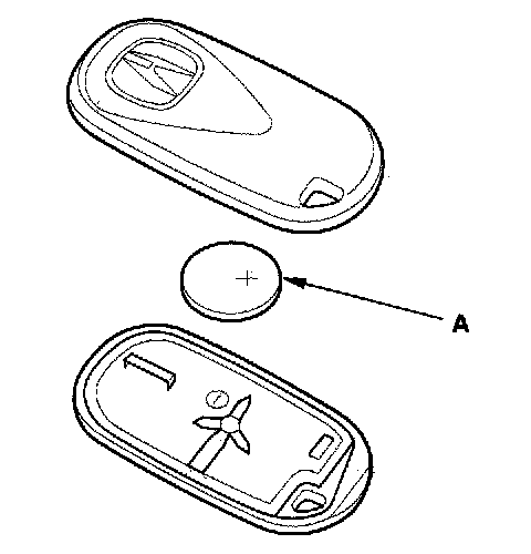 4. Replace the transmitter battery (A) with a new one, and try to lock and unlock the doors with the transmitter by pressing the lock or unlock button five or six times.
