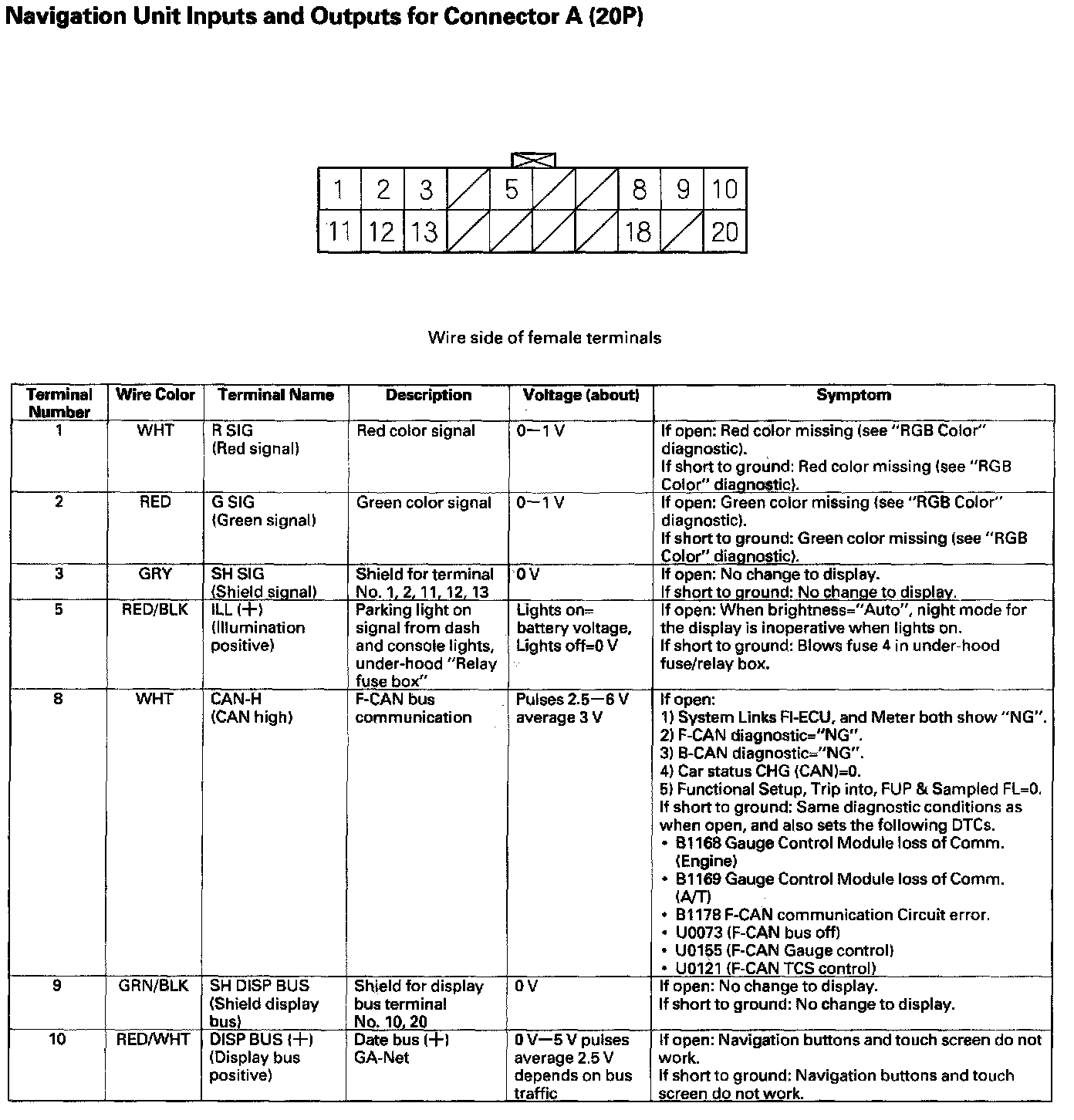 Navigation Unit Inputs And Outputs For Connector A (20P) Part 1: