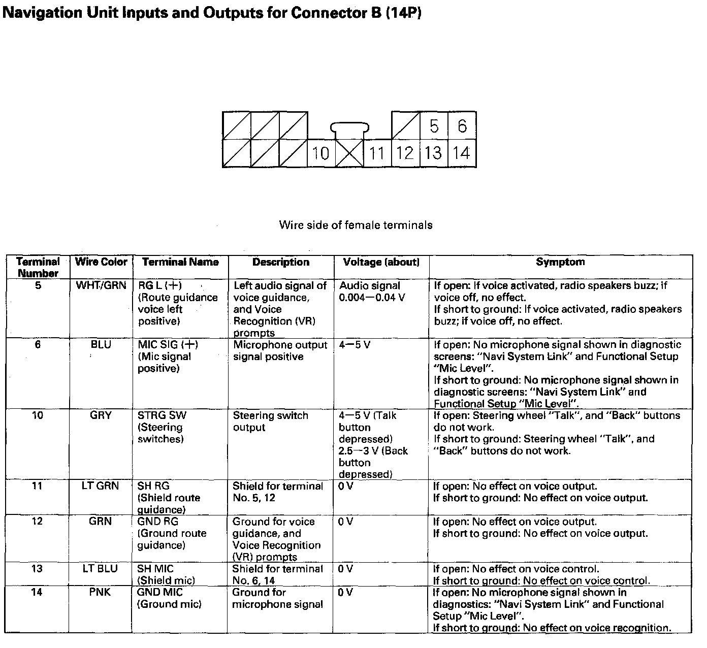 Navigation Unit Inputs And Outputs For Connector B (14P):