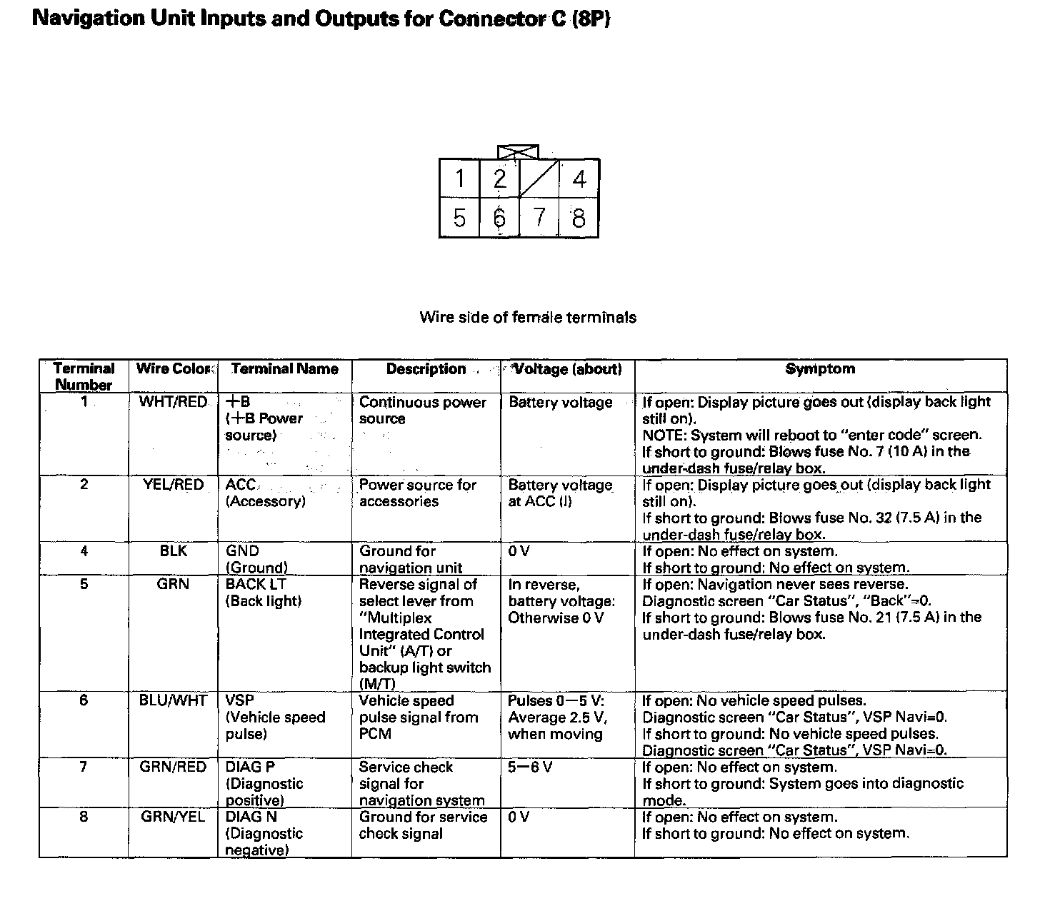 Navigation Unit Inputs And Outputs For Connector C (8P):