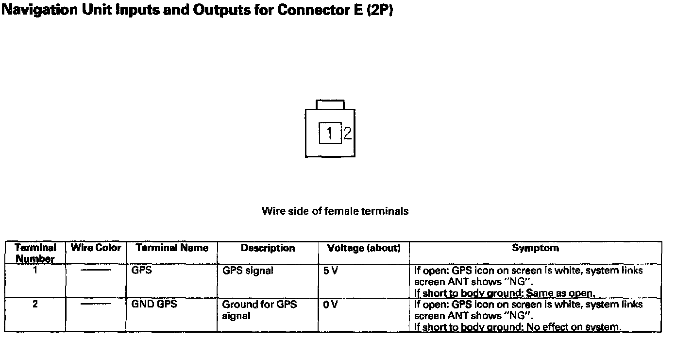 Navigation Unit Inputs And Outputs For Connector E (2P):