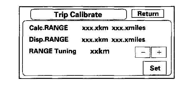 By holding down the MENU button while on the "Trip Information" screen, you will see the this screen. This screen allows you to adjust the vehicle range (distance to empty).
