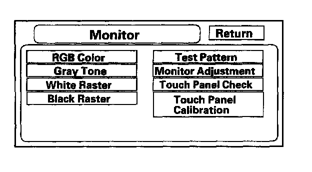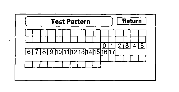 The panel touch sensing system consists of a touch sensitive resistive membrane covering the display. Contrary to other systems using infrared beams, the screen has to be physically "touched" to make it work. The display has capability of an almost infinite number of touch locations. However, to be compatible with earlier systems, the software only senses the locations shown on the diagnostic screen above. Every possible touch button position is shown on this diagnostic screen. Touching one of these areas should cause its color to reverse, and sound a "beep". If the touch locations are off slightly (by less than one touch locations), use the "Touch Panel Calibration" diagnostic to re-align the touch "zones" with the screen image. If any areas of the screen either don't respond, or respond at some other location when touched, then replace the display unit.