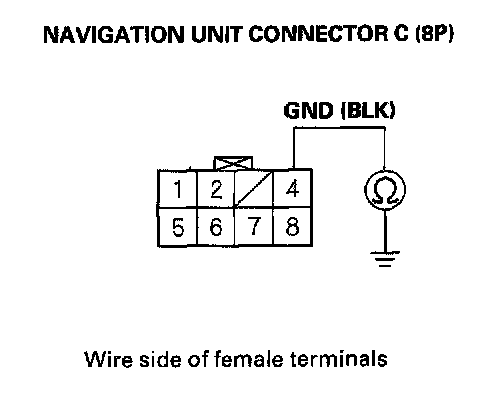 8. Check for continuity between navigation unit connector C (8P) terminal No. 4 and body ground.