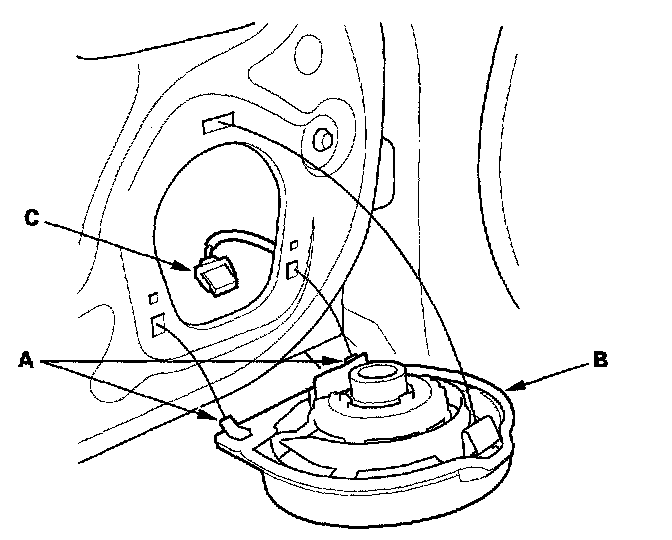 3. Disconnect the 2P connector (C), and remove the speaker.