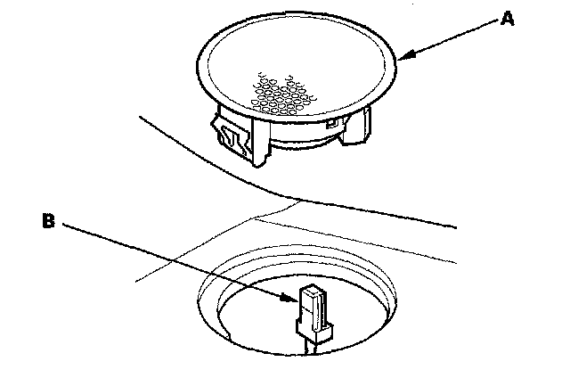 1. Remove the tweeter speaker grille and tweeter (A).
