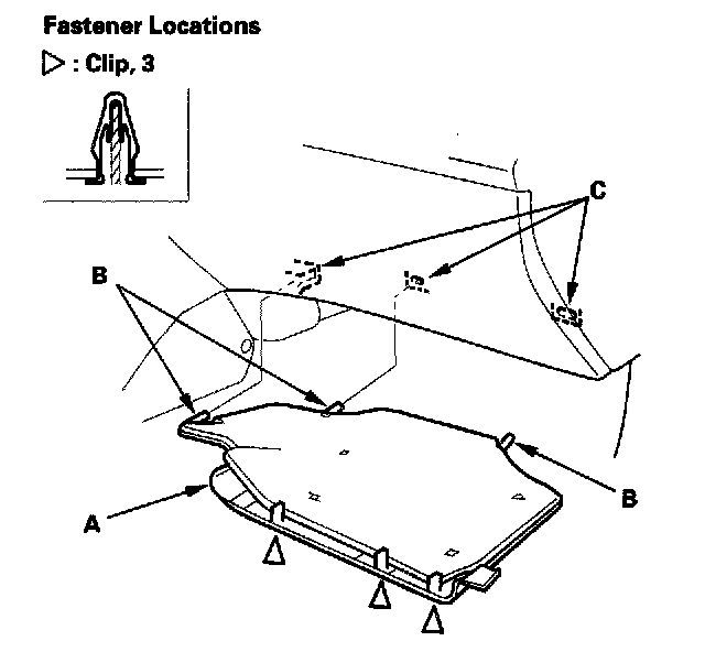 1. Gently pull down the edge nearest the glove box to detach the clips.