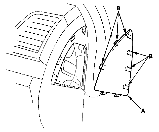 4. From the inside of the dash, gently push out on the front of the dashboard side cover (A) to release the hooks (B), to remove the cover.