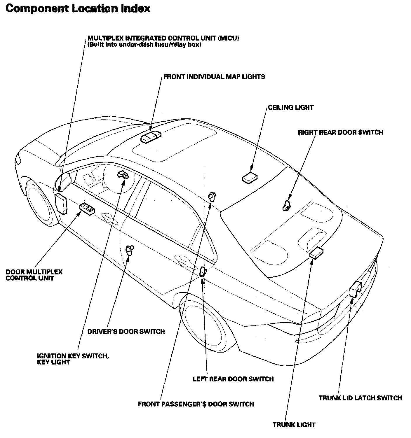 Keyless/Power Door Locks/Security System - Component Location Index: