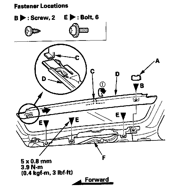 3. Pry out the lid (A), remove the screws (B), and release the hooks (C), then remove both bracket covers (D). With a T25 Torx bit, remove the bolts (E) from both glass brackets (F).