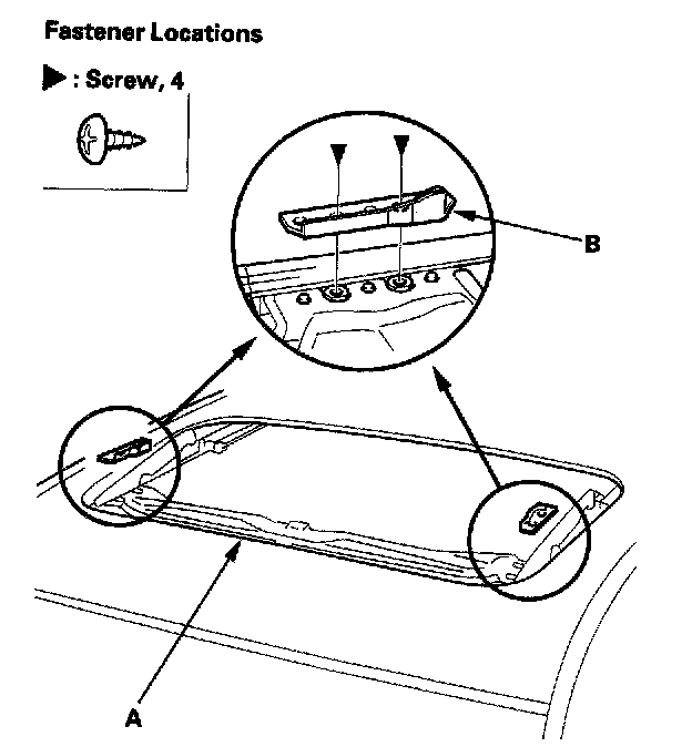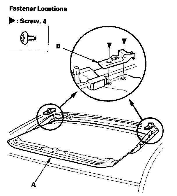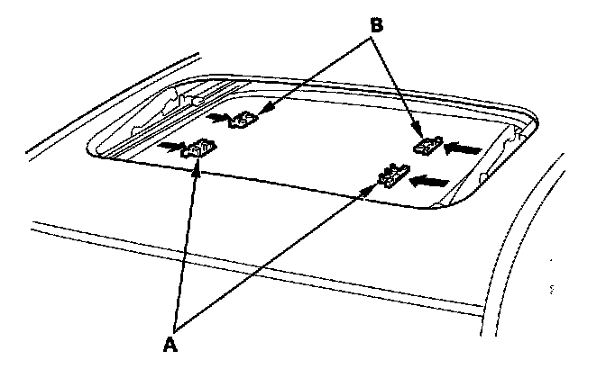 7. Remove both front sunshade base sliders (A) and both rear sunshade base sliders (B).