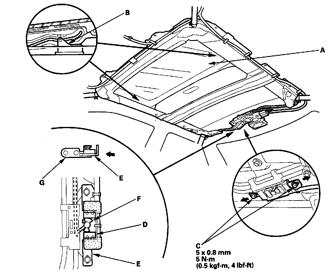 2. With the moonroof wrench, close the glass (A) fully: