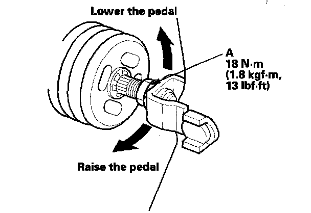 3. Loosen the push rod locknut (A), and screw the pushrod in or out with pliers until the standard pedal height from the floor is reached. After adjustment, tighten the locknut firmly. Do not adjust the pedal height with the pushrod pressed.