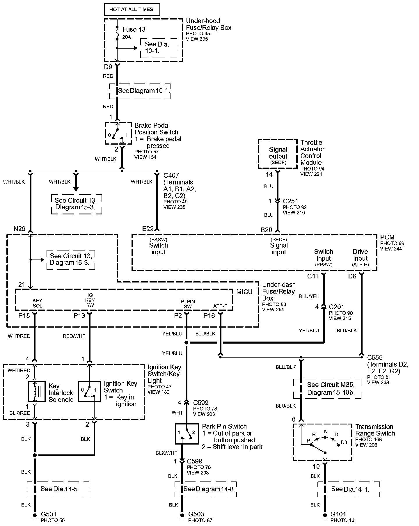 Connector Views: Connector terminal views (references to VIEWS) referred to within these diagrams can be found at Connector Views by View Number. Connector Views By View Number