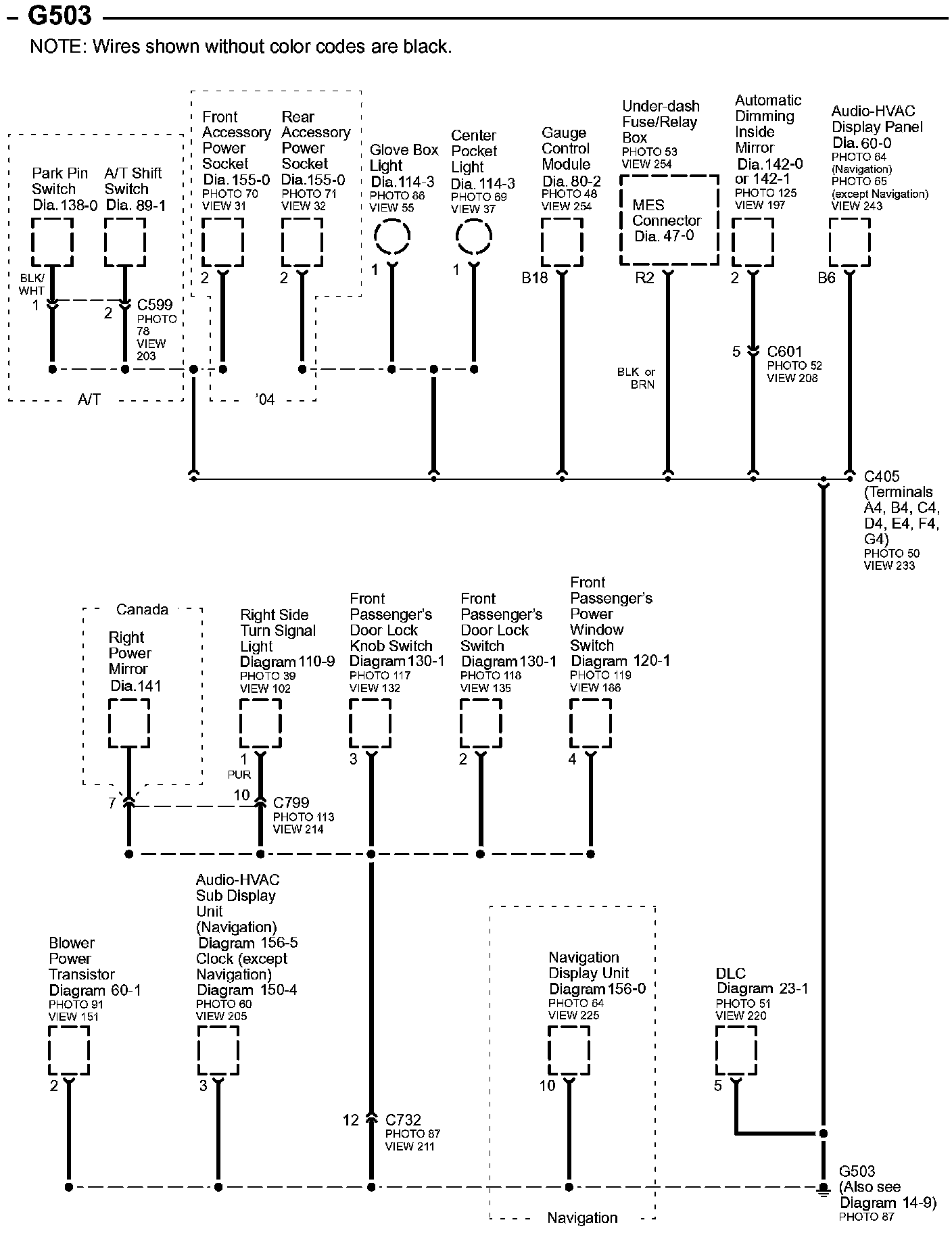 Connector Views: Connector terminal views (references to VIEWS) referred to within these diagrams can be found at Connector Views by View Number. Connector Views By View Number
