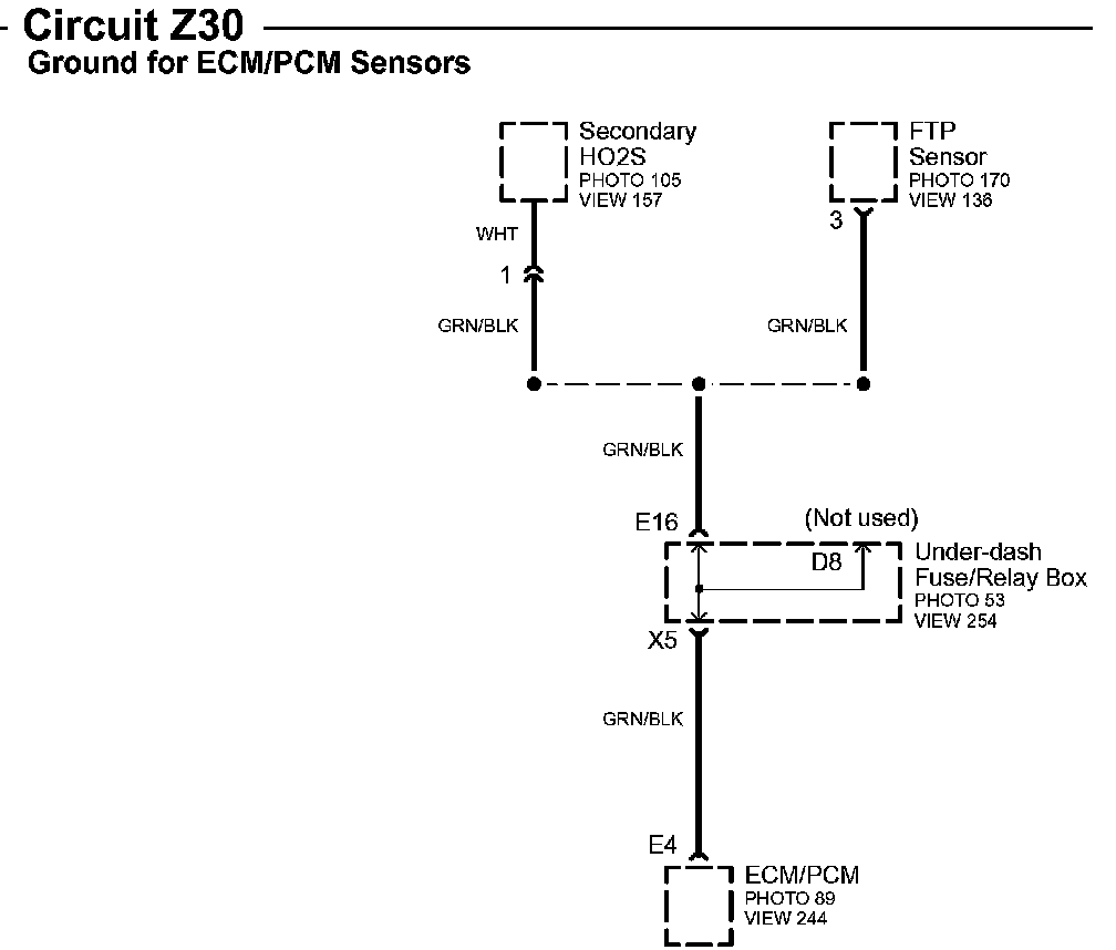 Circuit Z30 Ground For ECM/PCM Sensors: