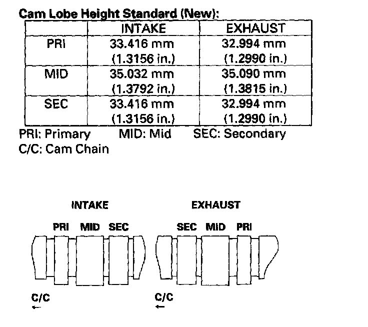 ^ If the camshaft-to-holder clearance is beyond the service limit and the camshaft has been replaced, replace the cylinder head.