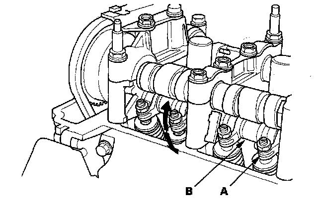 ^ If the mid and primary rocker arms do not move together with the secondary rocker arm, remove the mid, primary, and secondary rocker arms as an assembly, and check that the pistons in the rocker arms move smoothly. If any rocker arm needs replacing, replace the mid, primary, and secondary rocker arms as an assembly, and retest.