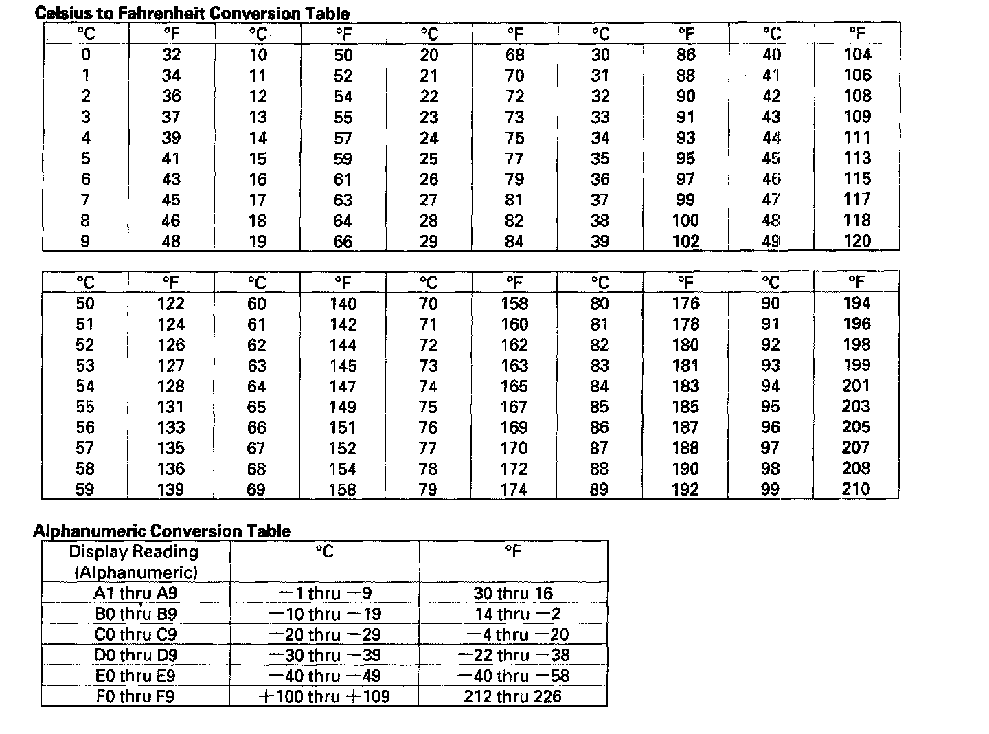 - The sensor values will be displayed in degrees Celsius (°C) or an alphanumeric code. Use the chart to convert the value to degrees Fahrenheit (°F).