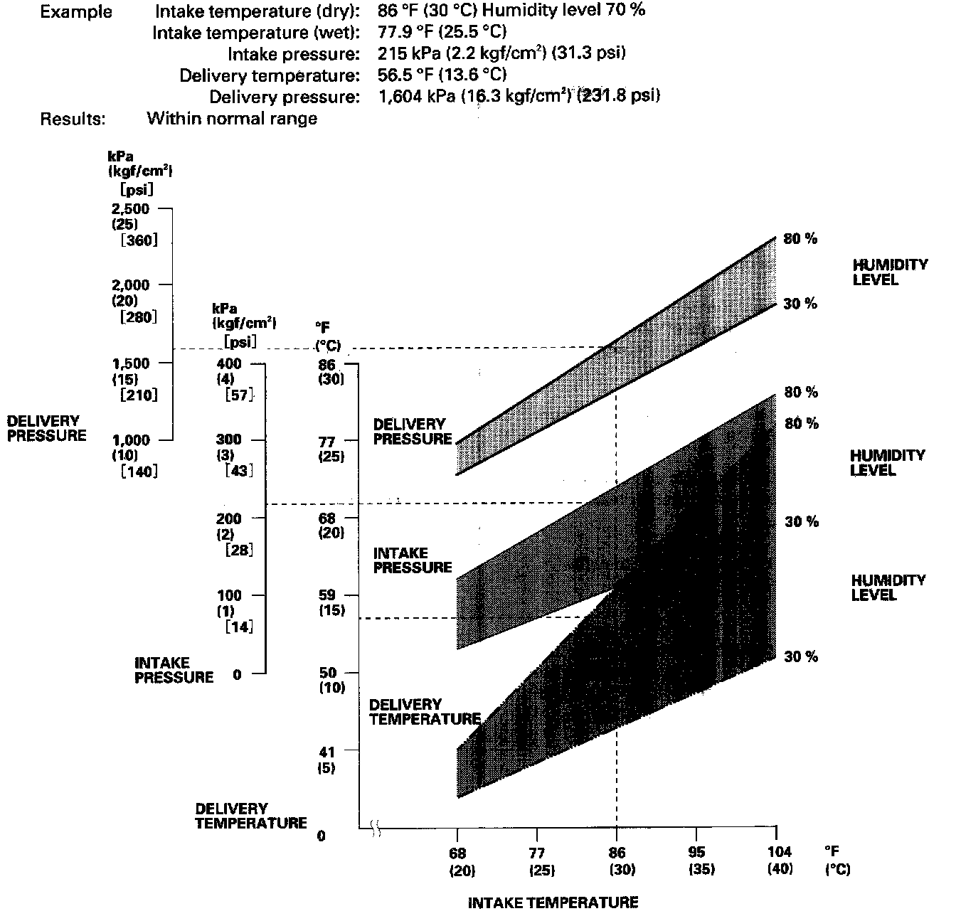 - Mark the intake temperature (ambient air temperature) along the bottom line.