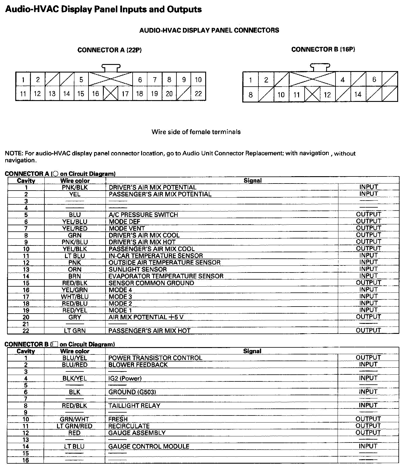 Audio-HVAC Display Panel Units And Outputs: