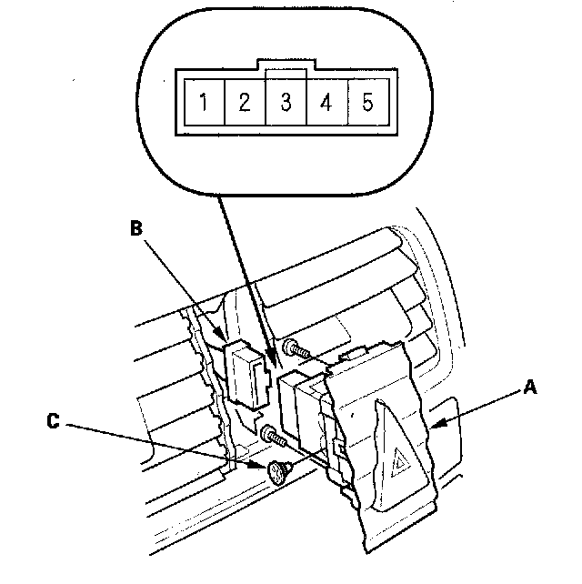 5. If the continuity is not as specified, replace the bulb (C) or the hazard warning switch.