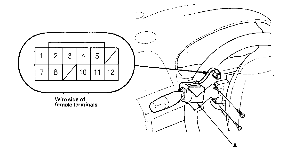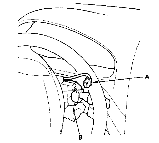 3. Disconnect the 12P connector (A) from the wiper/washer switch (B).