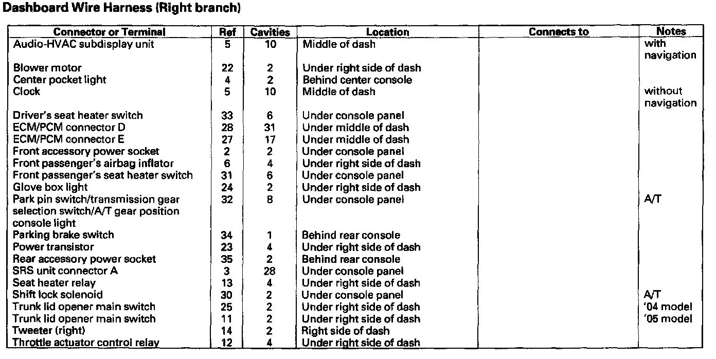 Dashboard Wire Harness (Right Branch):