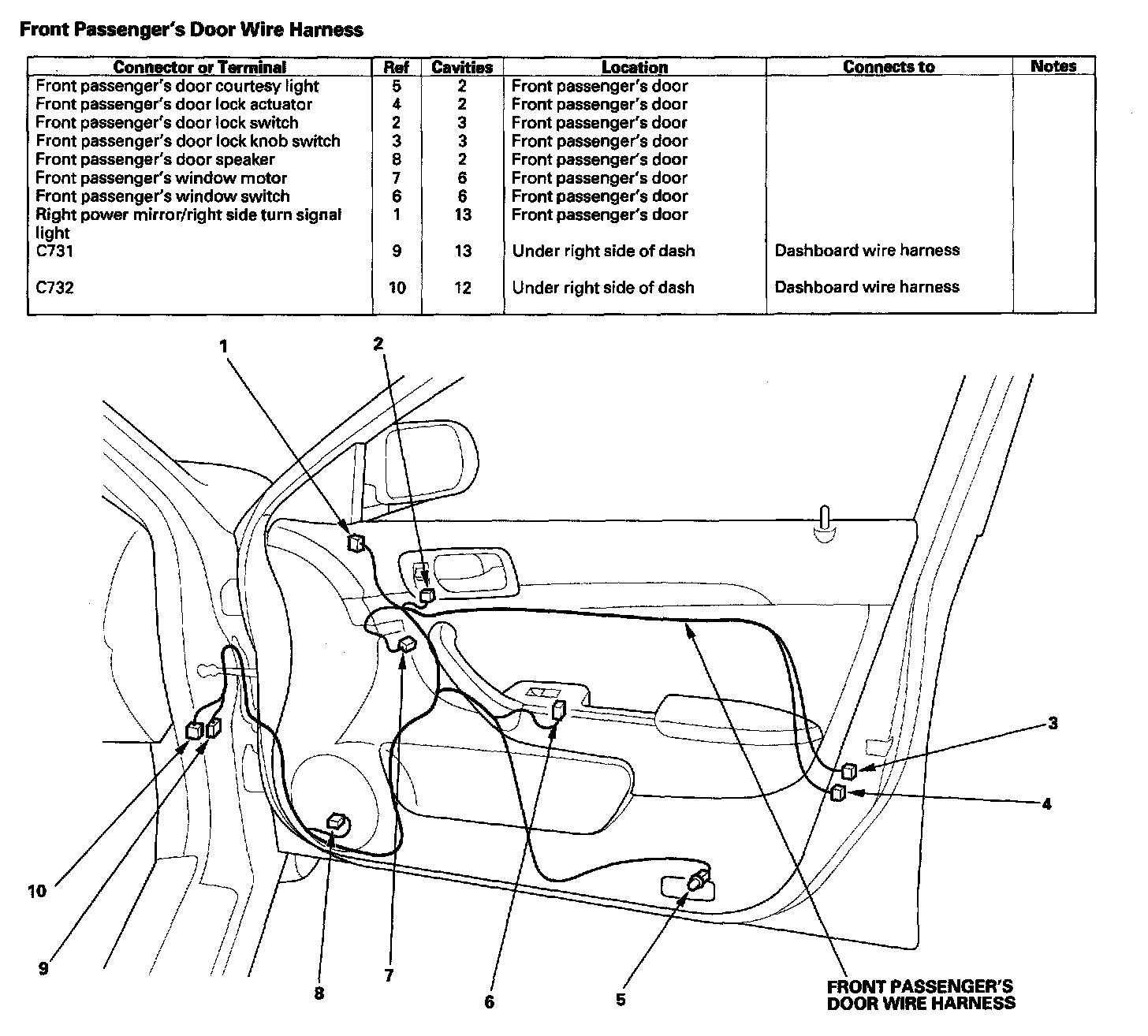 Front Passenger's Door Wire Harness/Right Power Mirror Jumper: