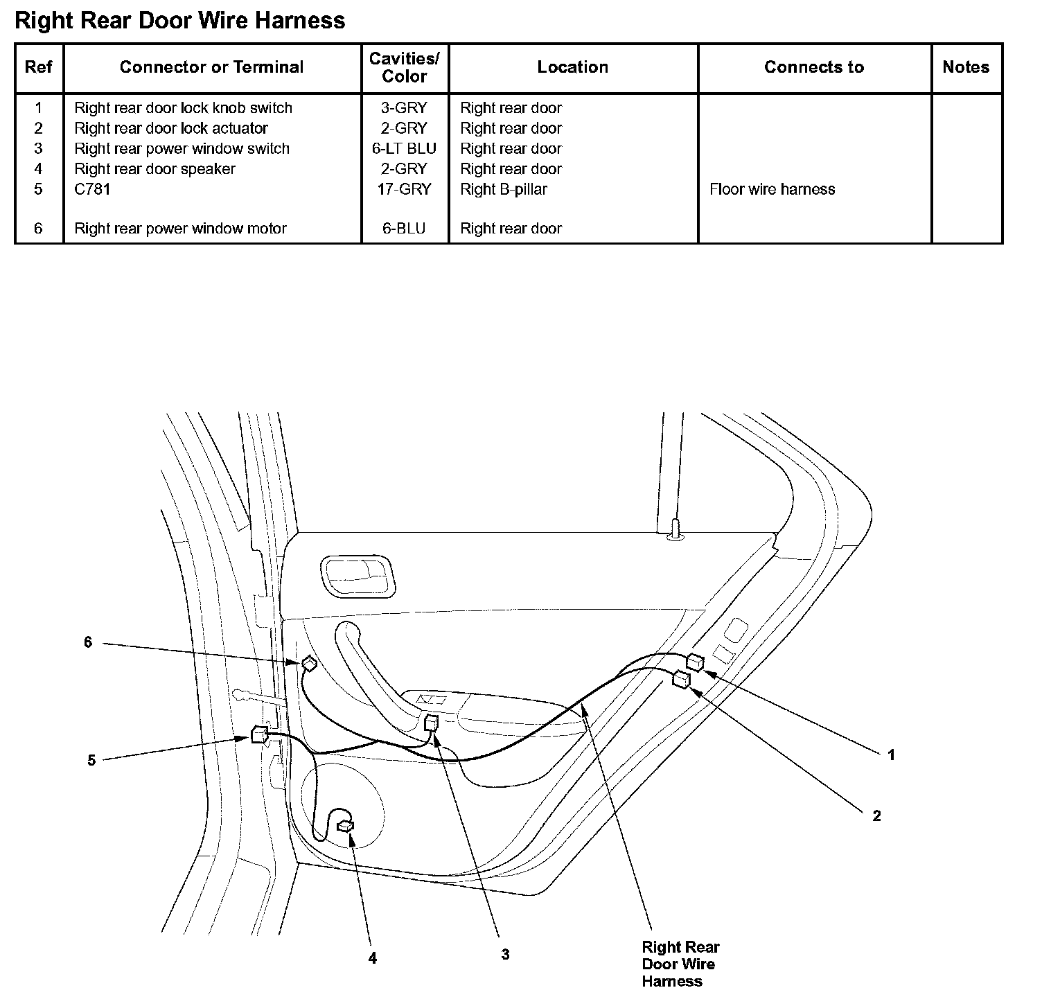 Right Rear Door Wire Harness: